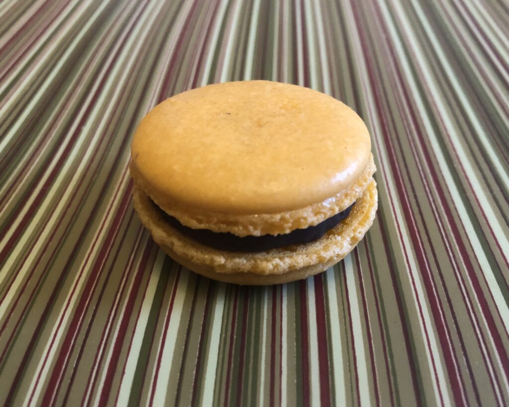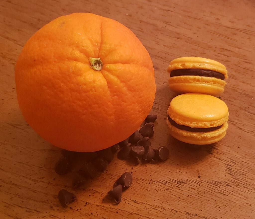 She used the egg whites that were left from making the curd and made orange macarons with an orange chocolate ganache filling.